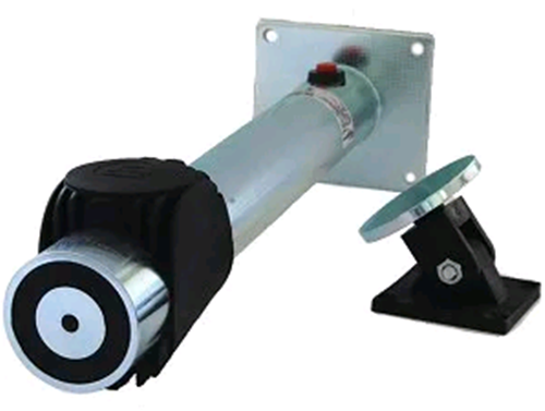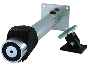 960122 Notifier Fermo elettromagnetico con tubo distanziale e testa girevole dotato di piastra di ancoraggio con regolazione angolare. Pulsante per sblocco manuale. Protetto contro le inversioni di polarità. Tensione di funzionamento 24Vcc. Forza di tenut