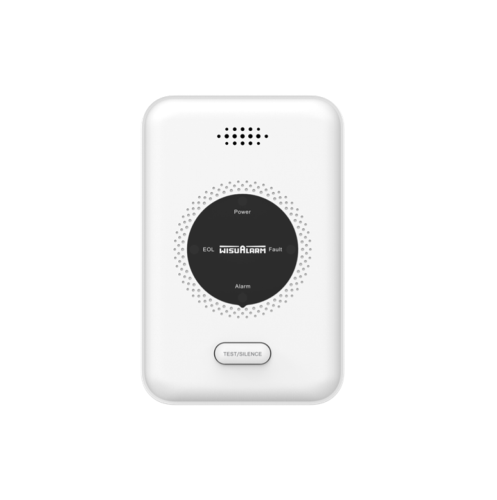 Sensore gas metano (CH?) standalone da interno con interconnessione wireless (fino a 24 dispositivi), 4 indicatori luminosi, volume allarme 85 dB (entro 3 m), tasto modalità silenziosa, alimentazione 12 Vdc