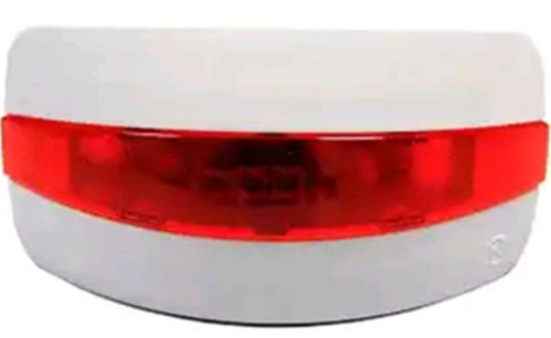 Ripetitore ottico d’allarme per rivelatori. Tensione di funzionamento di 3,7Vcc. Assorbimento in allarme di 9,5 mA. Dimensioni: 70mm x 35mm x 23mm.