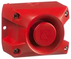 Sounder 10-60V IP 66. 3 Selezioni esterne della tonalità e internamente tra 64 toni diversi. Volume regolabile interno. Calotta antiurto colore rosso RAL3000. Temperatura -40 + 55C°. Certificata EN 54.3
