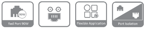 Switch Multi-Giga unmanaged con 9 porte (8 PoE 10/100/1000/2500 Mbps <180 W + 1 SFP 1/10 Gbps), capacità switching 60 Gbps, rate inoltro pacchetti 44.64 Mpps, 2 red port 90 W, 53 Vdc, alimentatore incluso