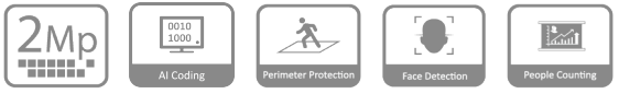 Encoder IP AI WizMind Starlight, risoluzione 2 MP a 50fps, AI H.265, 2 ingressi e 2 uscite allarme, 1 ingresso e 1 uscita audio, 1 porta RJ-45 10/100 Mbps, privacy mask 4 aree, 3D NR, IVS (protezione perimetrale), Smart Object Detection, AcuPick, face detection, people counting, smart search, WDR 120 dB, slot micro SD card (max. 512 GB), alimentazione 12 Vdc/PoE <6.7 W