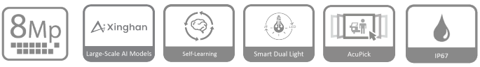 Telecamera eyeball IP AI WizMind Smart Dual Light da interno/esterno IP67, sensore CMOS progressivo 1/1.8", risoluzione 8 MP a 25fps, AI Coding, H.265+, ICR, ottica motorizzata 2.7~12 mm ƒ1.8, luminosità 0.0008 lux ƒ1.8 (0 con IR On), portata IR/warm light fino a 50/40 m, 1 porta RJ-45 10/100 Mbps, microfono integrato, privacy mask 4 mosaici o 8 blocchi colorati, 3D NR, WDR 120 dB, EPTZ, IVS (protezione perimetrale), SMD 4.0, AcuPick (con NVR AcuPick), face detection, people counting, heat map, metadati video, slot micro SD card (max. 1 TB), alimentazione 12 Vdc/PoE+/ePoE <15.9 W