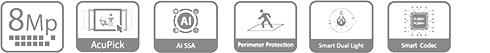 Telecamera dome IP AI WizSense Smart Dual Light da interno/esterno IP67 antivandalo IK10, sensore CMOS progressivo 1/2.7", risoluzione 8 MP a 25fps, AI coding, H.265+, ICR, ottica fissa M12 2.8 mm F1.4, luminosità 0.007 lux ƒ1.4, portata IR/warm light fino a 30 m, microfono integrato, 1 porta LAN 10/100 Mbps, IVS (protezione perimetrale), SMD 4.0, AcuPick (con NVR AcuPick), AI SSA, privacy mask 8 aree, 3D NR, WDR 120 dB, micro SD card (512 GB), alimentazione 12 Vdc/PoE <8.2 W