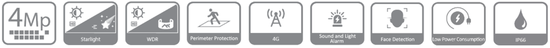 Speed dome IP 4G AI WizSense Starlight 6" con Smart Dual Light e deterrenza attiva da interno/esterno IP66, sensore CMOS progressivo 1/2.8", risoluzione 4 MP a 25fps, rotazione PAN 360° endless / TILT -20°~90°, auto flip 180°, H.265+, ICR, zoom ottico 32x (4.8~154 mm ƒ1.6~4.0), luminosità 0.005 lux ƒ1.6, portata IR/LED fino a 150/50 m, 1 porta LAN 10/100 Mbps, 4G supportato, 2 ingressi e 1 uscita allarme, 1 ingresso e 1 uscita audio, 1 porta RS485, 5 scan, 8 tour e 5 pattern, 2/3D NR, WDR 120 dB, privacy mask 24 aree, IVS (protezione perimetrale), metadati video, face detection, construction detection, auto tracking 3.0, SMD 4.0, AcuPick, slot micro SD card (fino a 512 GB), alimentazione 12 Vdc <18 W, staffa da parete PFB305W e alimentatore inclusi